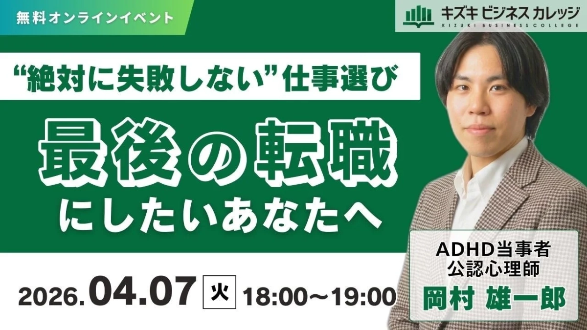 就労移行支援事業所・キズキビジネスカレッジ(KBC)は、2026年4月7日(火)に、短期離職の負のループを断ち切り、無理なく長く働ける適職に出会うための無料オンラインセミナーを開催します。